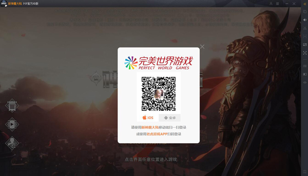 桌面版安装完成后,将进入登录界面。从官网下载的游戏包与从完美游戏平台下载的游戏包除安装方式不一样之外(完美游戏平台自动安装,不需要操作),登录方式均相同,均为扫码登录游戏。我们提供了两种登录方式。一种为手机游戏客户端扫码登录,另一种为使用老虎游戏APP扫码登录。(无论是安卓用户还是苹果用户,均可使用我们的官方桌面版)