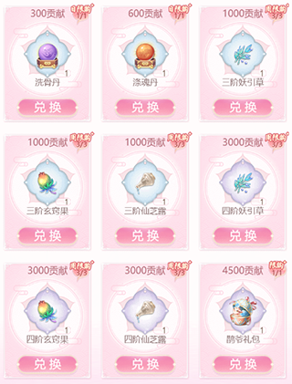 仙盟商店里的道具可用个人贡献兑换。仙盟商店里的道具有每日刷新和每周刷新。随着仙盟等级的提升,仙盟商店会解锁更多的道具。