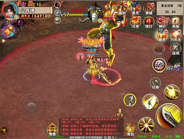 从上述来看,黄龙真君多为中大范围的高伤害攻击,所以攻略时尽量不要太扎堆,避免一倒倒一片的局势,而且一定要注意BOSS的定身技能。