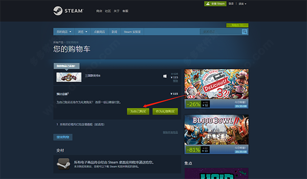 4、然后会自动启动steam,点击添加至购物车;