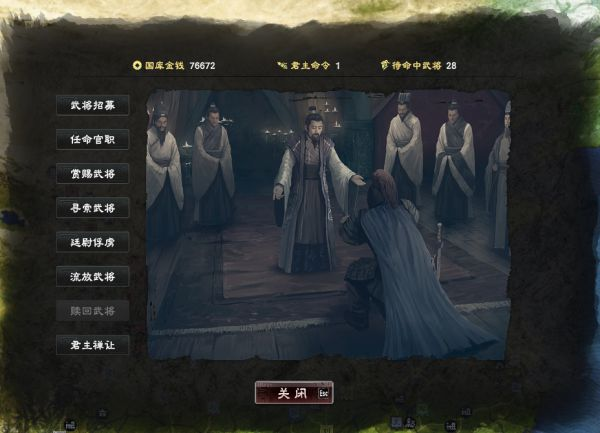 将君主位禅让给麾下武将,对象需要为一品官,或是亲属。同时要有较高的忠诚度。禅位后,原君主会变为普通武将,全势力的武将忠诚度会下降10点。