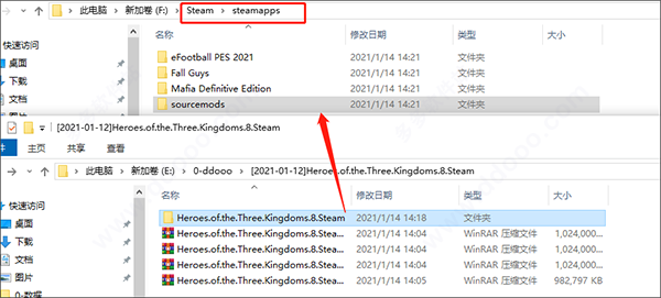 2、把得到的Heroes.of.the.Three.Kingdoms.8.Steam文件夹复制到,X\Steam\steamapps文件夹中(steam的游戏文件存储文件夹);