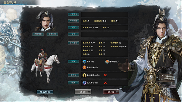 9、游戏还支持自定义武将,姓名、关系、能力属性都可以自定义;