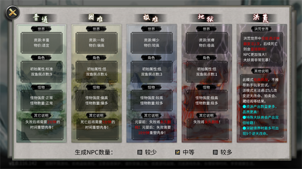 首先来介绍一下,开局难度怎么选,开局难度分为,普通,困难, 极难,地狱,洪荒,也就是有阶梯难度,不同玩家,可以选择适合自己的难度。