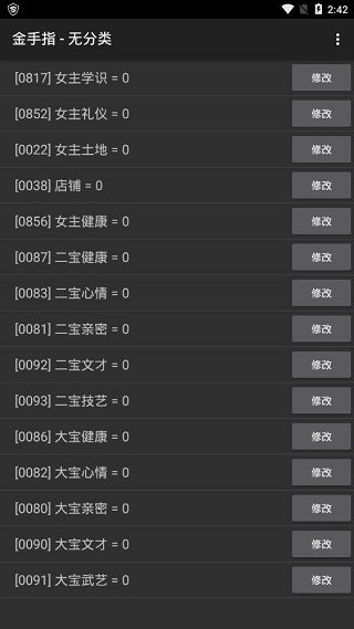 此刻会进入金手指界面,在对应的【修改】中输入你要修改的数值,即可获取大量资源。