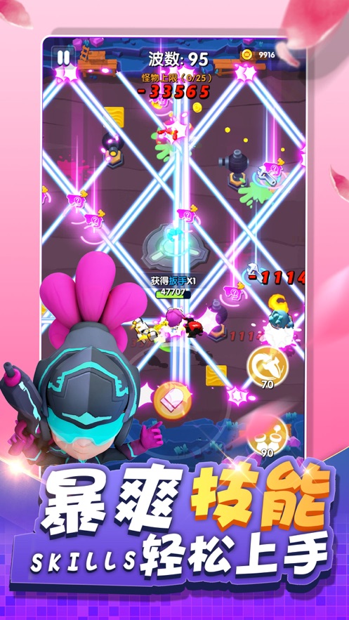 2、指尖操作,操控英雄展现刀尖狂舞,在像素地图魔性走位,敌人追不上你。