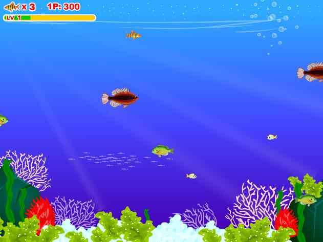 游戏的方式是让主角先吃下与自已体型相同的鱼;