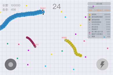 3.长按加速键,用巧妙的走位让蛇身被别人撞上,即可以吃掉他们。